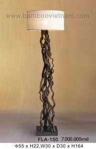 Vật liệu: Thân đèn bằng rễ cây, chụp vải.